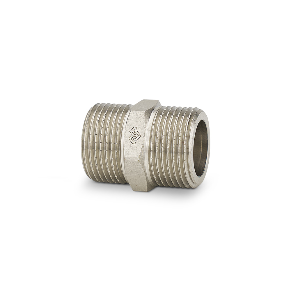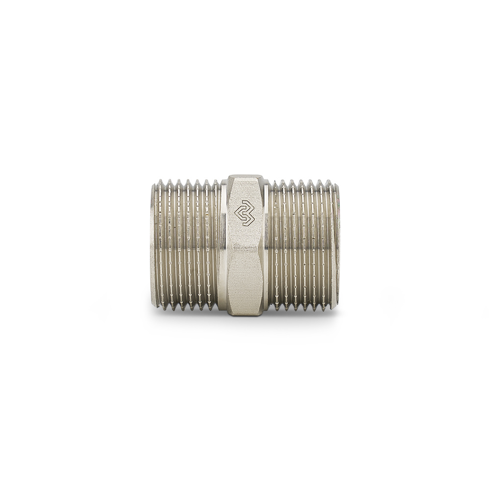 Ниппель равносторонний Varmega, относится к резьбовым фитингам и предназначен для соединения резьбовых элементов на трубопроводах холодного (в том числе, питьевого) и горячего водоснабжения, отопления, сжатого воздуха и на технологических трубопроводах, транспортирующих газы и жидкости, не агрессивные к материалу соединителей.